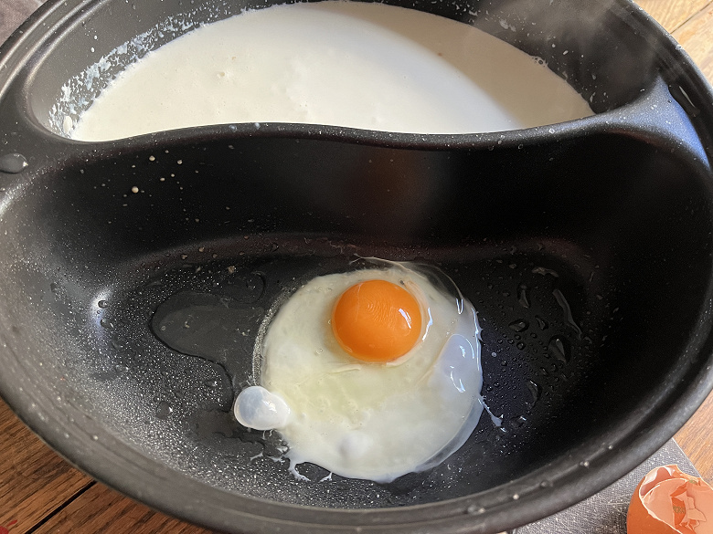При поджаривании яйца тоже было отлично видно, где белок схватывается, а где температуры поверхности чаши просто недостаточно для этого.