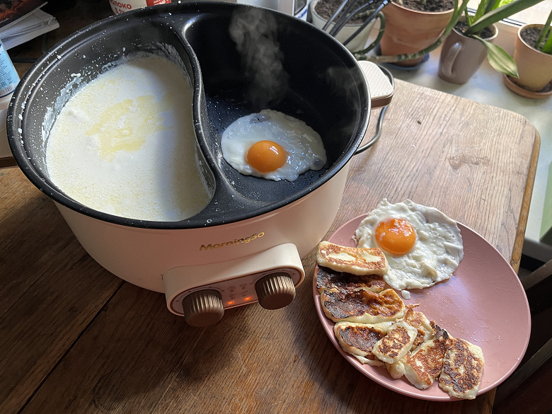 MorningSo YY-C32CM понравилась нам снаружи и внутри, но в процессе эксплуатации выяснилось, что начинка у нее сделана либо непродуманно, либо недобросовестно: под обоими отсеками находились непозволительно маленькие нагревательные элементы. И это влияло как на варку густой каши, так и на поджаривание сыра и яичницы. Каша у нас попросту не приготовилась, но подгорела в месте нагревательного элемента, а приготовление простейшего завтрака на одного человека отняло 4 подхода.