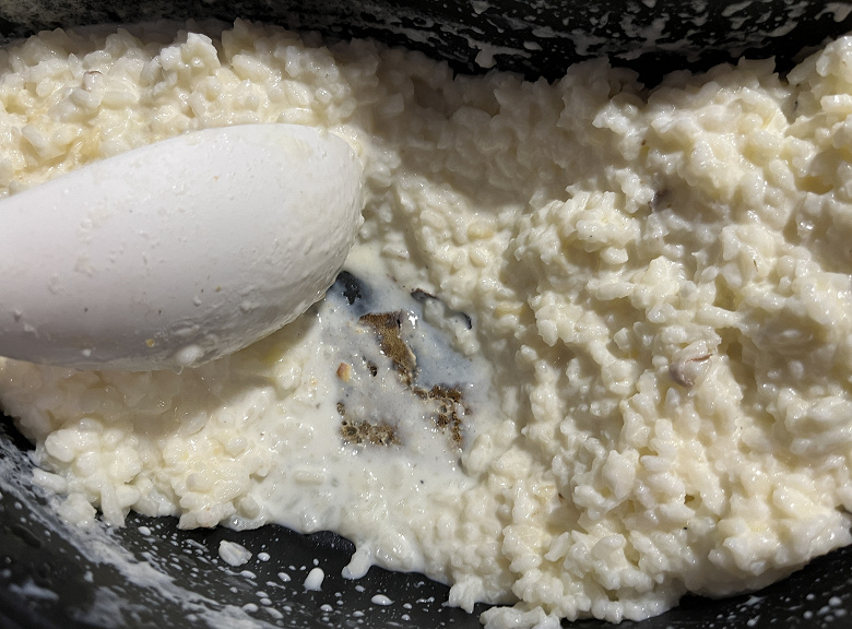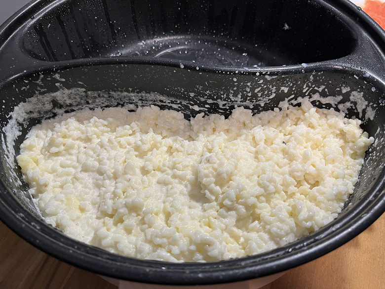 Мы использовали первый, минимальный режим нагрева, постоянно помешивали кашу, и всё равно в течение всей готовки в центральной части молоко и рис подгорали, а основная масса даже не была близка к готовности.