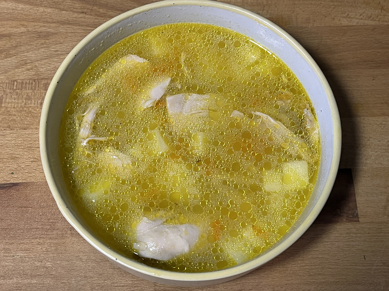 Через 10 минут получили вполне приличный куриный суп.