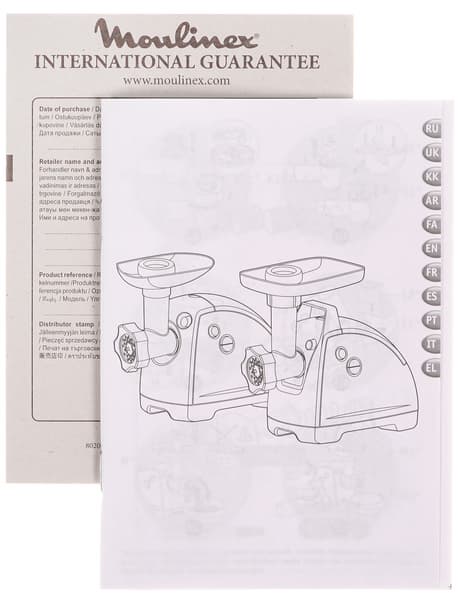 Брошюра «Правила техники безопасности», по-видимому, является общей для всей мелкой бытовой техники Moulinex, поскольку в ней встречается информация о венчиках для взбивания яиц и крема, упоминается соковыжималка и другие приборы, не имеющие отношения к мясорубкам.