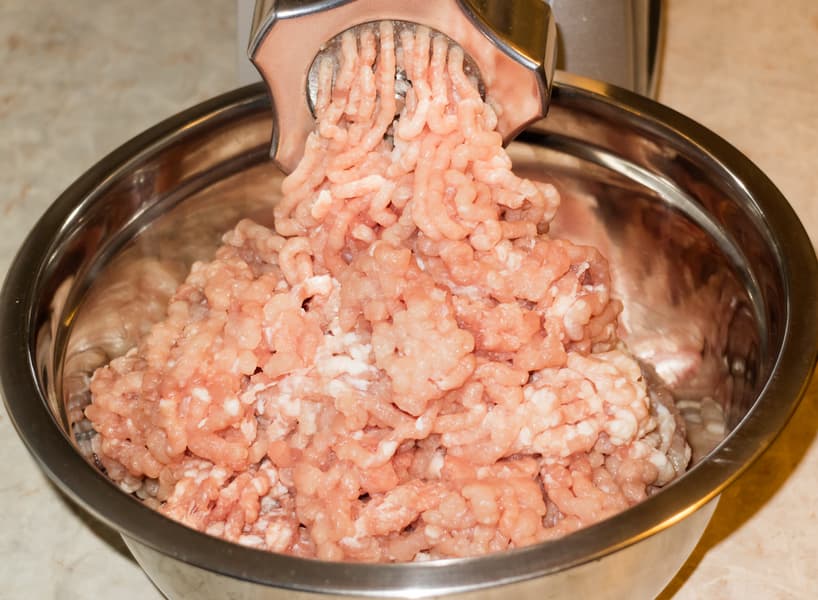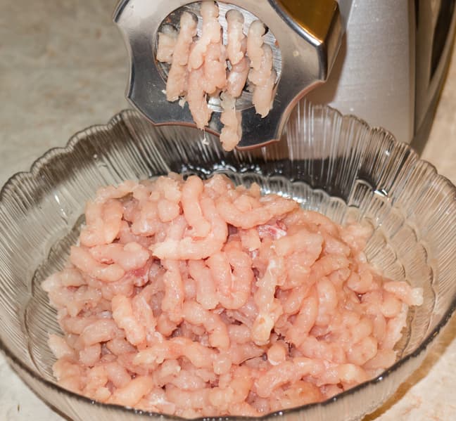 Филе индейки весом 730 г перерабатывали через решетку с крупными отверстиями.