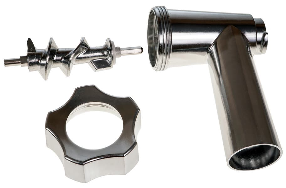 - съемная часть мясорубки (корпус, винт, нож, решетка со средними отверстиями, гайка);