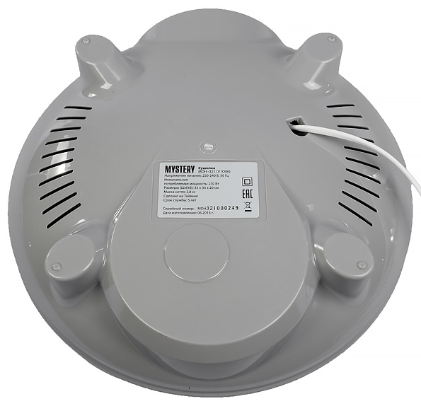 Mystery MDH-321 — весьма примитивная сушилка (чего, впрочем, никто не скрывает). Ей под силу далеко не все сценарии сушки — в основном из-за довольно высокой температуры в нижнем поддоне, изменить которую невозможно. Также в результате практических тестов было выявлено, что внешний радиус сохнет быстрее внутреннего (а вот с этой особенностью просто сменой поддонов не совладать). С другой стороны, для самых примитивных сценариев из серии «высушить до практически полного обезвоживания» описанные недостатки не так уж критичны, что продемонстрировали наши тесты.