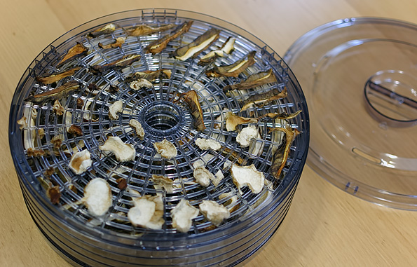 Приблизительно прикинув возможности сушилки и эффективность ее работы на помидорах, с грибами мы поступили вообще элементарно просто: включили и «забыли» на 10 часов. Наши ожидания полностью оправдались.