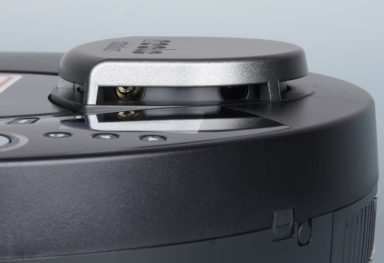 Это совершенно нелишне с учетом того, что в процессе уборки робот может касаться (мягко) базы. На передней панели базы — большое окошко из тонированного полупрозрачного пластика, за которым, видимо, находятся ИК-маячки парковки. Ниже — широкие подпружиненные контактные площадки. Они плюс длинные контактные полоски на самом роботе гарантируют надежный контакт робота с базой даже при слегка кривоватой парковке.
