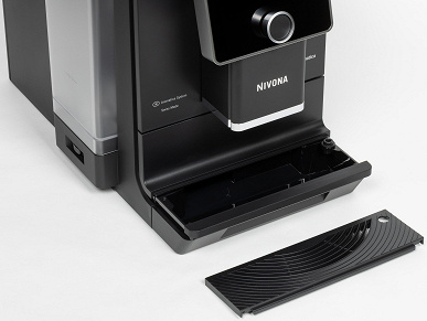 NICR 930 — новинка, она даже отсутствовала в русскоязычном разделе сайта nivona.com на момент подготовки обзора, хотя вовсю предлагалась в российской рознице. У нее иная конфигурация панели управления: ЖК-экран поменьше и не сенсорный, управлять работой и настройками нужно с помощью «поворотного диска», соответственно прямоугольник панели повернут на 90 градусов по сравнению с моделями 960/970. Нет подсветки бака с водой, цвет корпуса серебристый, цена на 10 тысяч рублей ниже.