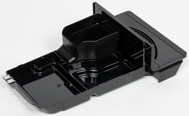 На внутренней части поддона есть секция, куда устанавливается отдельный контейнер для жмыха. Какого-либо наглядного датчика заполнения вроде простенького «поплавка» не предусмотрено.