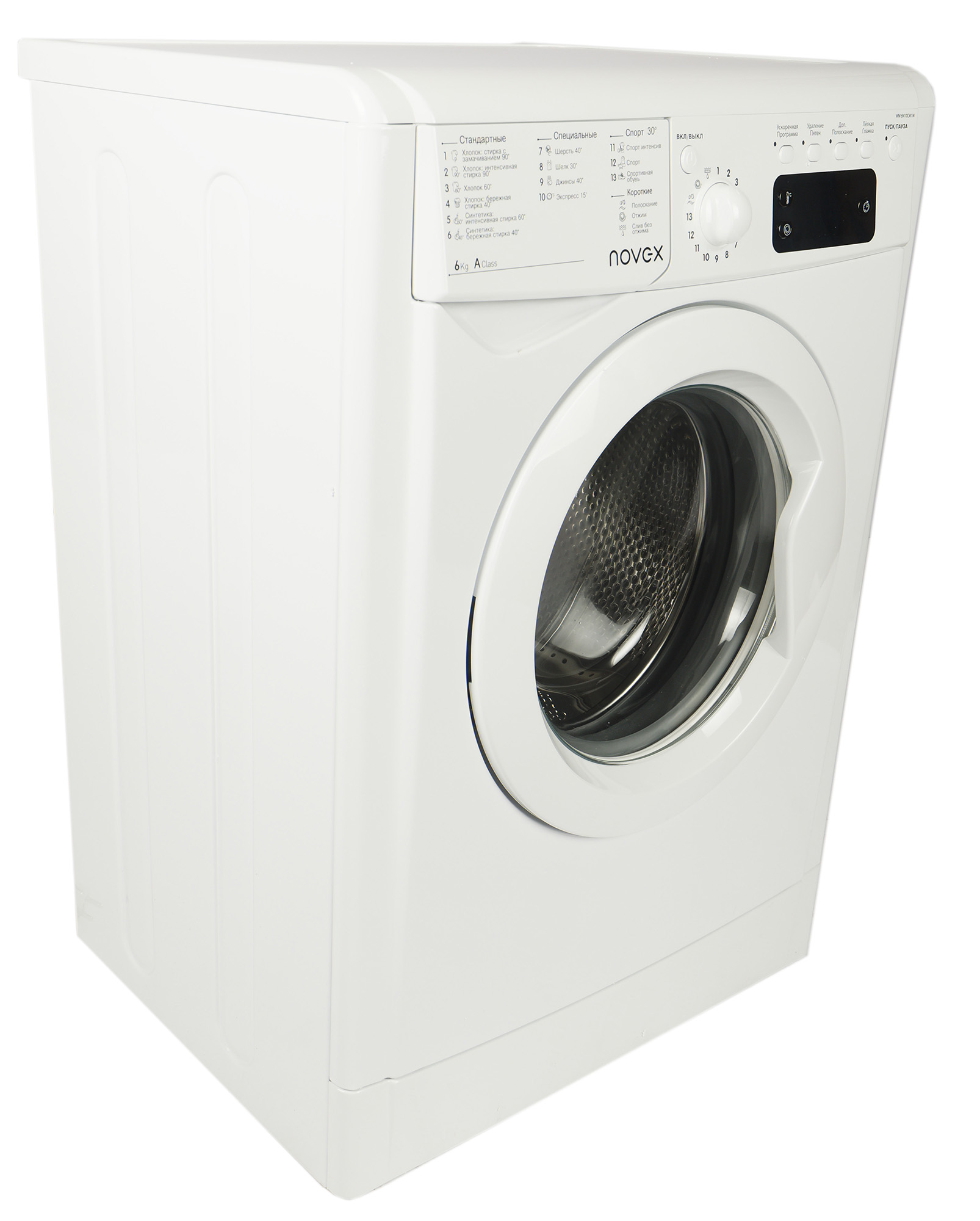 Вот, к примеру, Novex WM 6N10CM1W — машина, выпущенная брендом, который принадлежит группе «М.Видео-Эльдорадо». Она производится в России на мощностях Indesit. Рассмотрев ее пристально, мы поняли: она предназначена для молодых людей, у которых еще нет детей, зато много времени в распорядке дня отведено на спорт. Как мы сделали такой вывод? Узнаете в процессе чтения.
