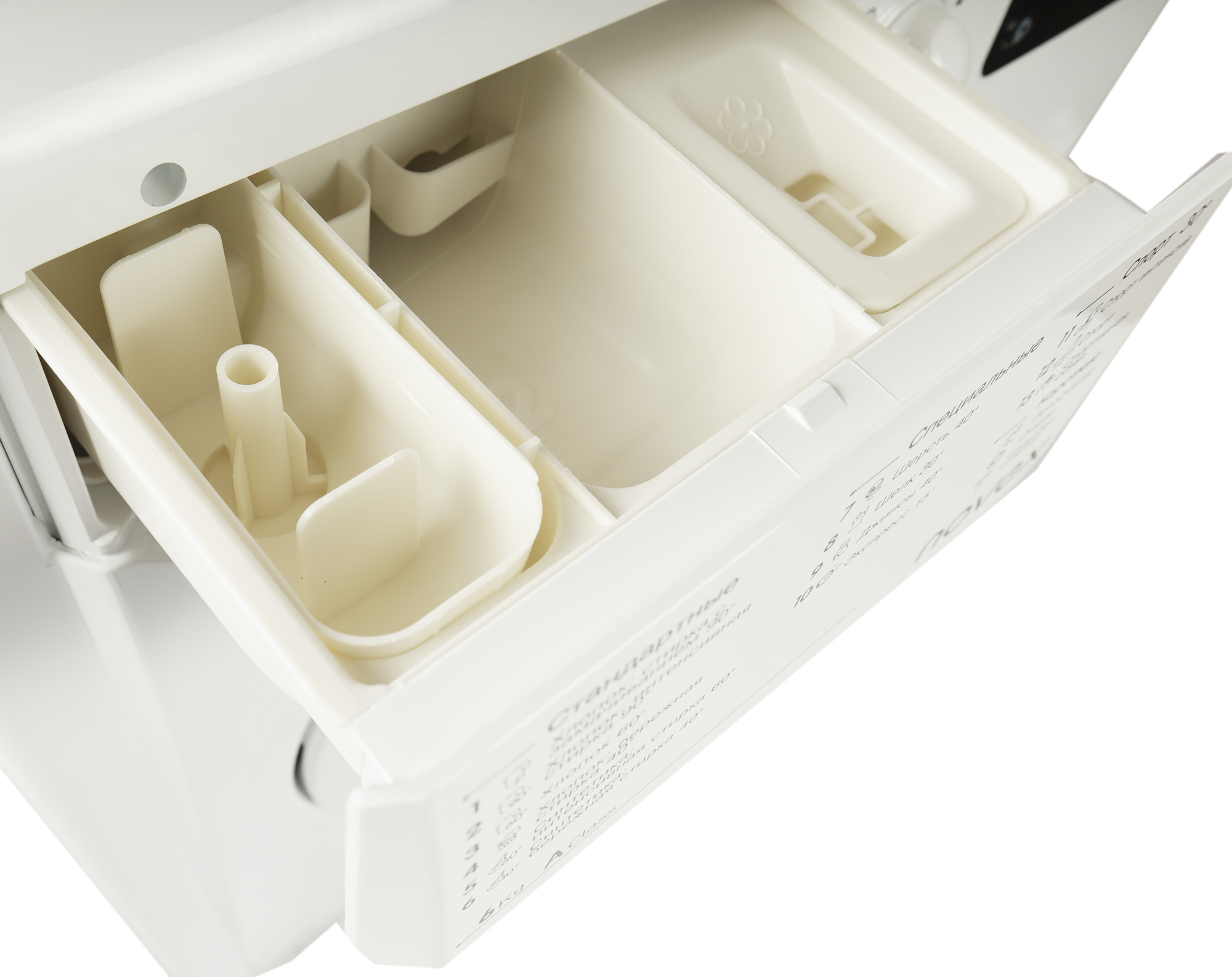 Конструкция лотка подразумевает использование для основной стирки порошковых и жидких моющих средств. Для предварительной допускается использование исключительно порошка. Ванночка, идущая в комплекте, предназначена для жидкого или сыпучего отбеливателя. Она вставляется в первый лоток, при ее использовании исключается возможность предварительной стирки.