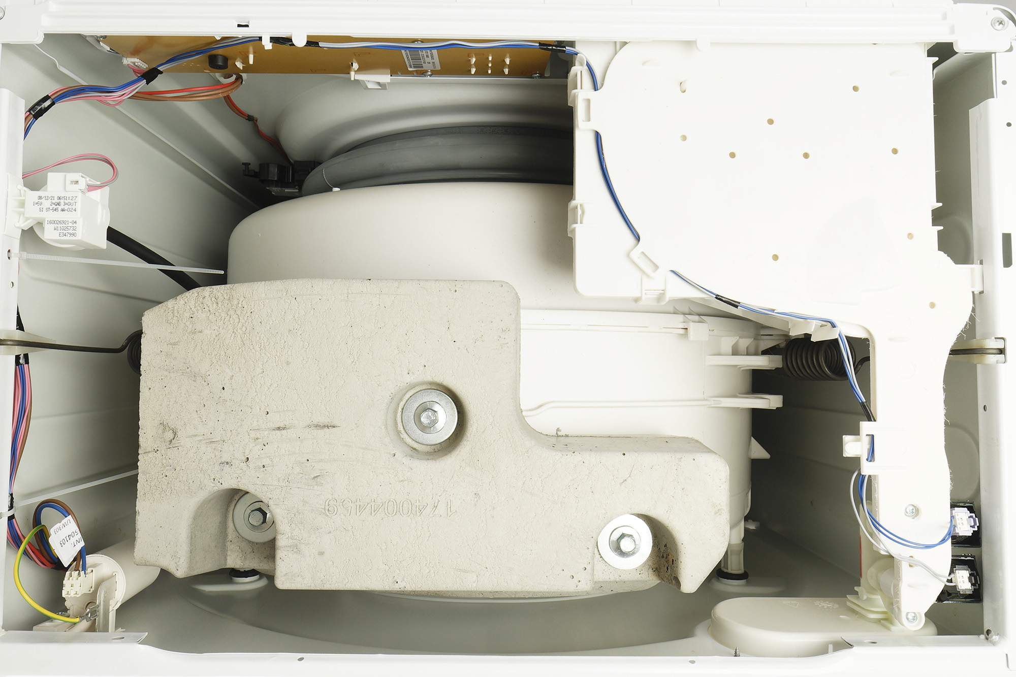По уже сложившейся традиции мы проводим неполную разборку стиральной машины и фотографируем ее изнутри.