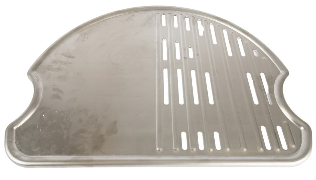 Конструкция чугунной решетки не так проста, как можно подумать: обратите внимание на места, где нет прорезей. Часть из них повторяет силуэт находящейся под решеткой горелки, предохраняя ее таким образом от прямого попадания стекающего жира на сопла.