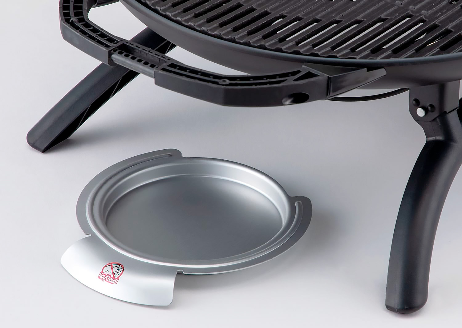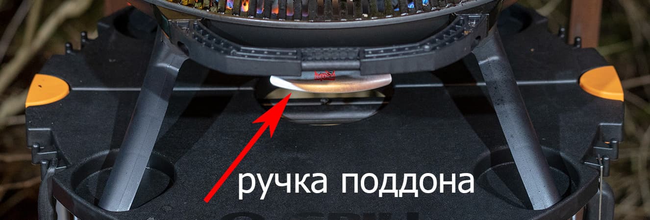 На этом же фото виден алюминиевый поддон, прикрывающий примерно аналогичного диаметра отверстие в нижней части гриля — в это отверстие будут стекать в процессе готовки излишки жира.