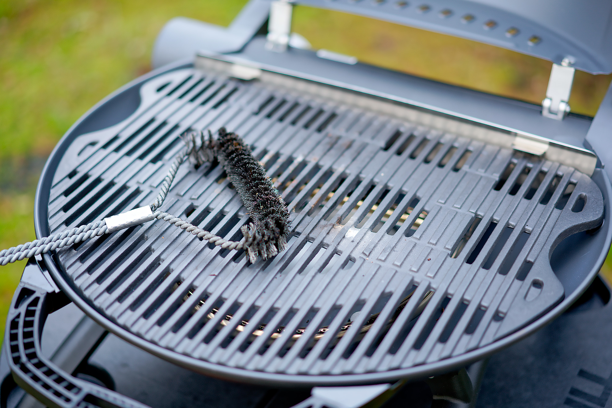 Из личной практики можем отметить, что чугунная решетка замечательно очищается пиролитическим способом: запускаете гриль «вхолостую» на полную мощность, дожидаетесь достижения максимальной температуры и даете ему постоять еще минут 5-10. Дальше остается специальной щеткой смести с чугуна угольки.