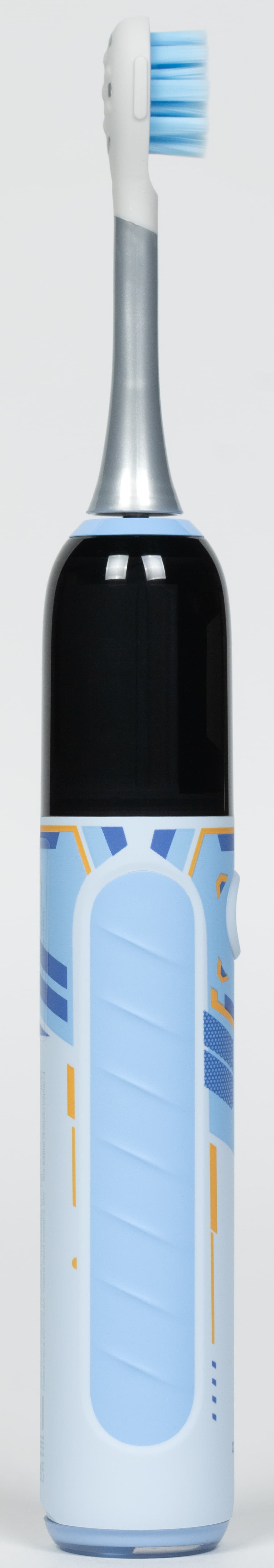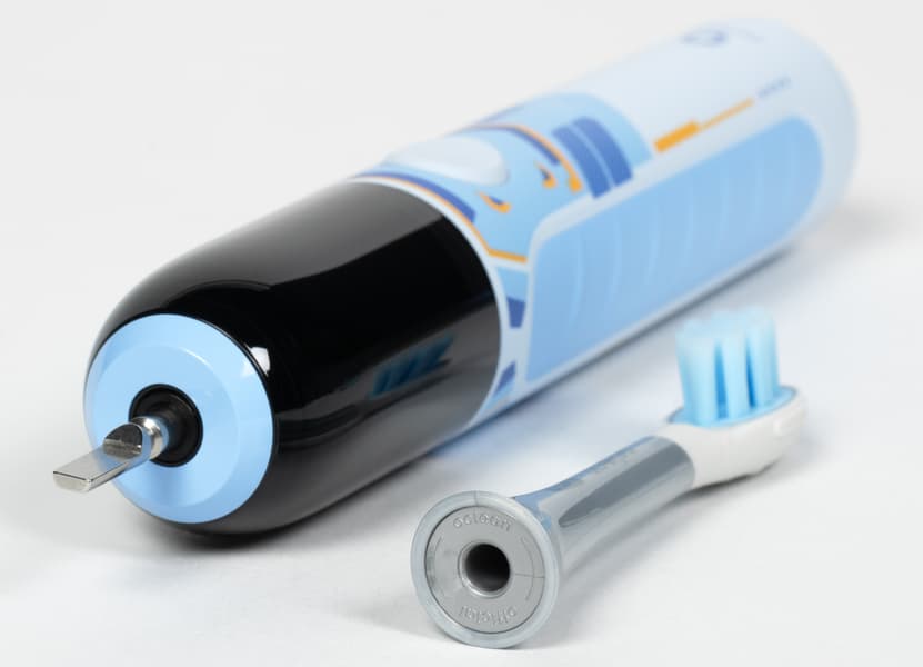 Дизайн щетки создан специально для детей: насадки уменьшенного размера и небольшой вес. Насадки вибрируют, и это ощущается не только зубами и деснами, но и рукой, держащей устройство.