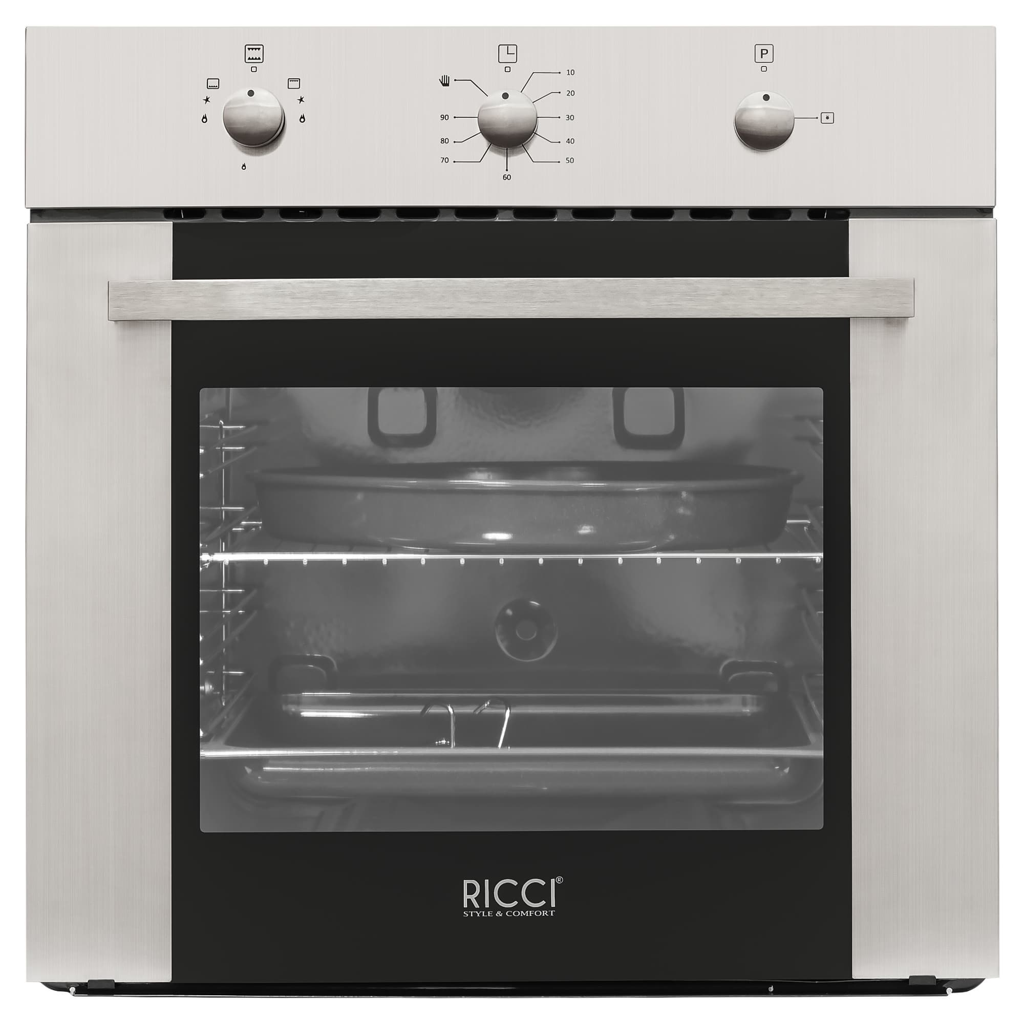 После выбора типа духового шкафа стоит определиться с его габаритами. Стандартным размером для современной кухни является ширина в 60 сантиметров и глубина, позволяющая поместить духовой шкаф под стандартную столешницу (то есть до 60 сантиметров). Желающие сэкономить место на кухне могут остановить свой выбор на компактных или узких духовках. Компактные духовые шкафы отличаются уменьшенной высотой (40-45 см против 55-60 у стандартных), а узкие уложатся в 45 сантиметров вместо стандартных 60.