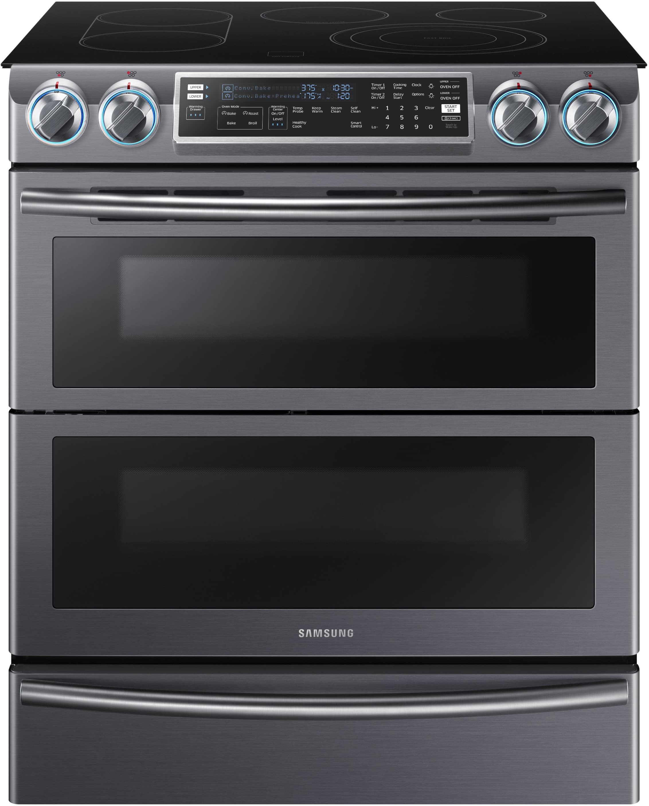 Что же касается электронного управления, то такие духовые шкафы имеют механические либо сенсорные кнопки и набор из дисплея и/или светодиодов, отображающих выбранный режим. Сенсорным может быть и сам дисплей. Благодаря электронной системе управления пользователю открывается доступ к более тонким настройкам: электронное управление позволит реализовать различные автоматические циклы приготовления, позволит более точно контролировать температуру внутри рабочей камеры и т. п. Стоит упомянуть и о наиболее современных духовках, разработчики которых не останавливаются на достигнутом и продолжают экспериментировать с высокими технологиями. У таких духовок, например, может иметься встроенная камера, позволяющая транслировать «картинку из духовки» на компьютер или мобильный телефон. Некоторые пошли еще дальше и встроили самый настоящий монитор вместо смотрового стекла. Такие духовки могут управляться дистанционно (посредством Wi-Fi- или Bluetooth-подключения), а на экране могут, например, выводиться подсказки, касающиеся процесса приготовления или видеорецепты. Понятно, что подобные духовки пока что не слишком распространены, да и вообще не очень понятно, какие из инновационных функций окажутся востребованы, а какие — отомрут за ненадобностью.