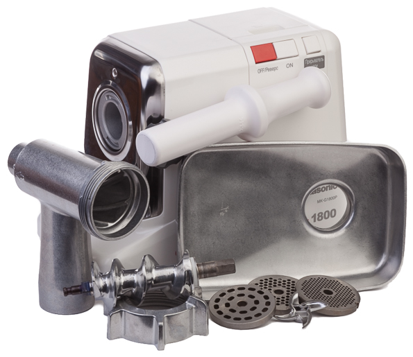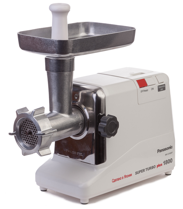 Продолжая изучение рынка мясорубок, во второй статье мы остановили свой выбор на агрегате, находящемся в верхнем ценовом диапазоне. По своим характеристикам (и цене) Panasonic MK-G1800P уверенно приближается к категории полупрофессиональной техники, подходящей для небольшого кафе.