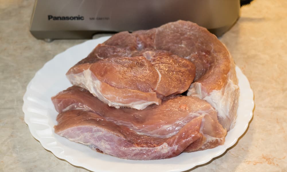Для этого теста мы установили в насадку решетку с крупными отверстиями. С мяса удалили лишь самые толстые и грубые жилы.