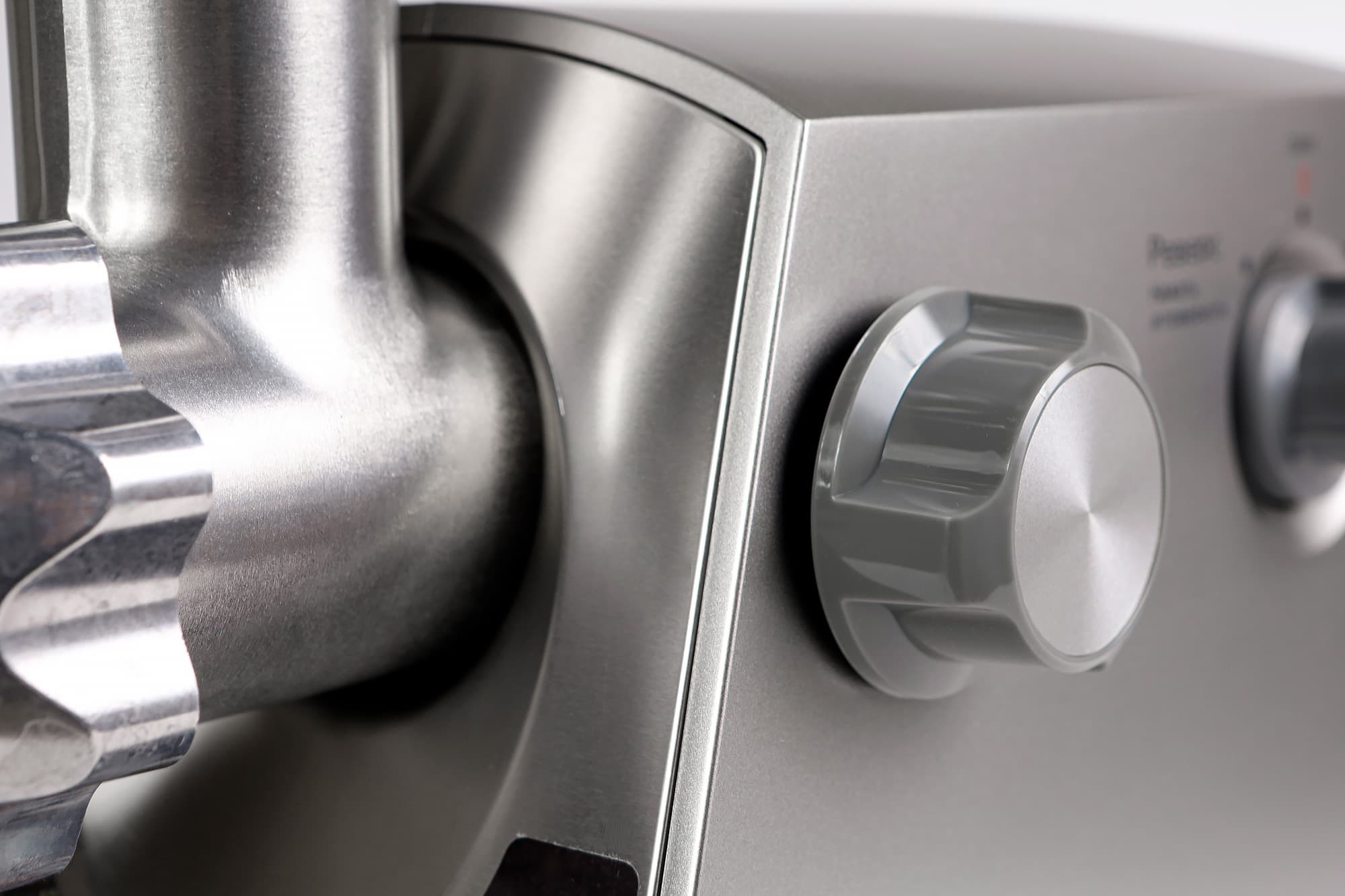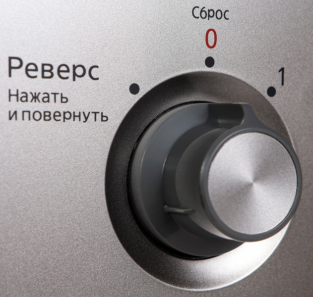 При вращении переключателя корпус стоит на месте, не пытаясь соскользнуть или сдвинуться. Переключатель не скользит даже во влажных или, что часто бывает при помоле мяса, грязных пальцах. Никаких особых требований к процессу управления не предъявляется. Обратное вращение шнека следует запускать после полной остановки мотора. Реверс работает только при удерживании переключателя в одноименном положении.