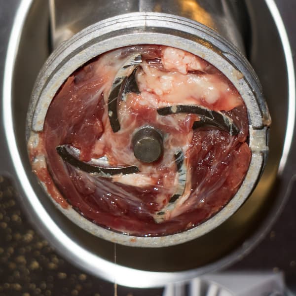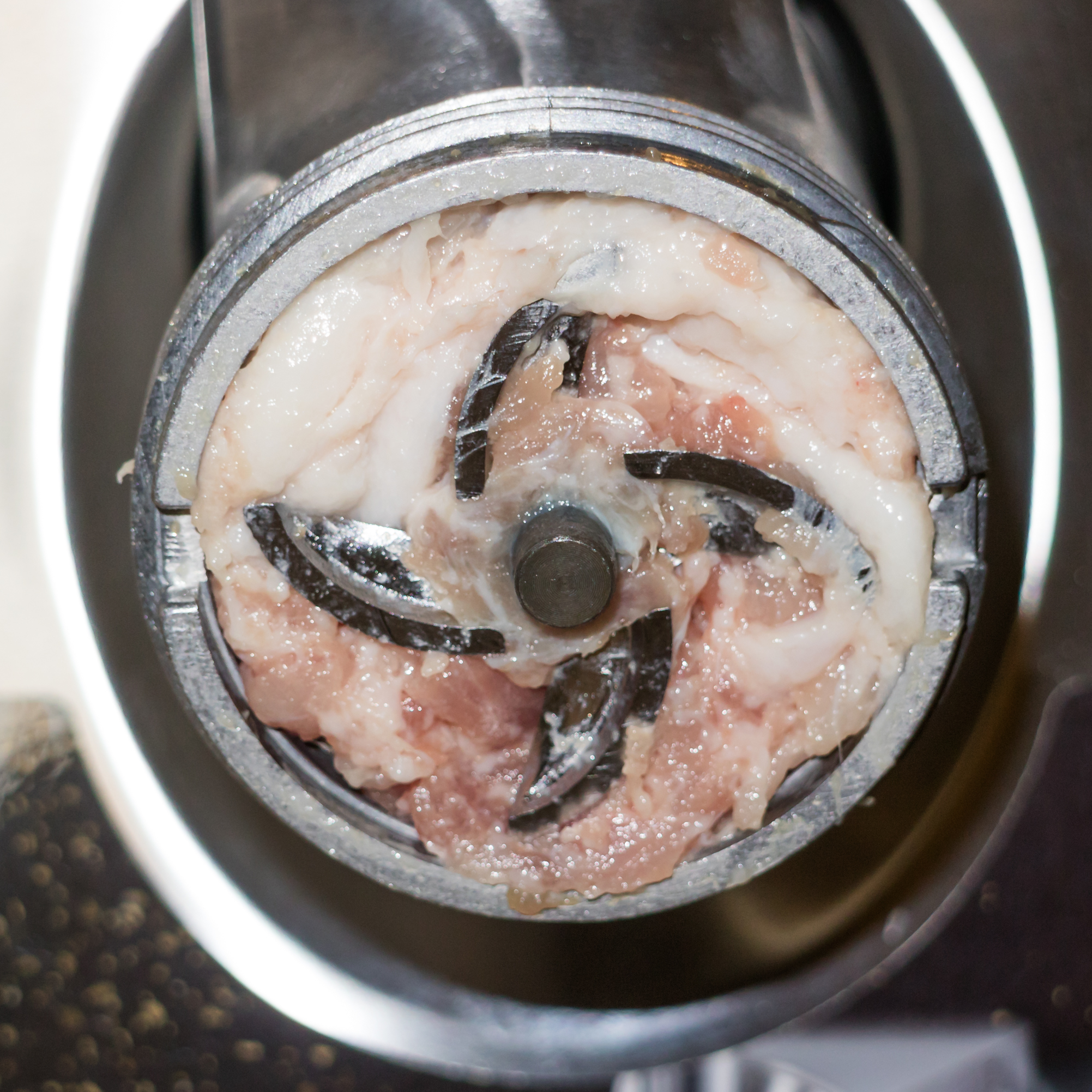 После разборки мясорубки мы увидели то же самое, что и в предыдущем тесте — некоторое количество непереработанного мяса в корпусе и почти чистые ножи.