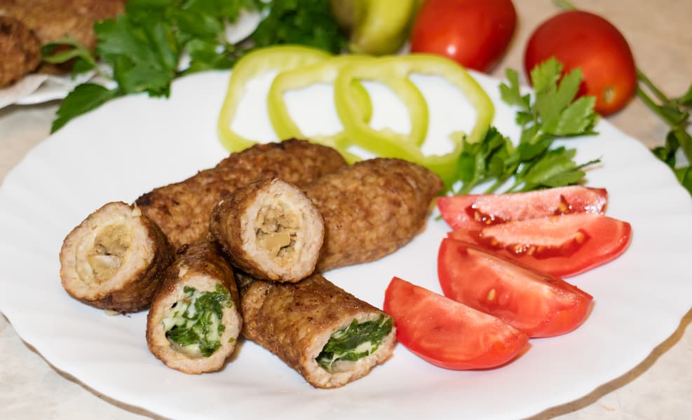 Блюдо получилось по крайней мере любопытное и сильно отличающееся от классических зраз. Оболочки кеббе тонкие, начинки входит много, выглядят цилиндрики привлекательно и прекрасны на вкус. А еще их очень удобно есть.