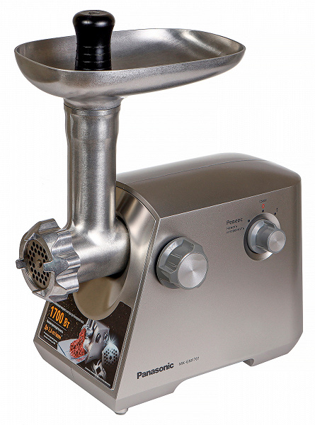 Мясорубка Panasonic MK-GM1701 относится к новинкам и была выпущена в продажу лишь в конце января 2019 года. Основная ее «фишка» заключается в ножах необычной формы. По заявлению производителя, ножи изготовлены на родине всемирно известных мечей, в японском городе Секи. Panasonic утверждает, что в ходе многочисленных испытаний им удалось создать оптимальную форму ножа. Лезвия вкупе с высокопроизводительным мотором должны творить чудеса. Так, например, производитель обещает, что мясорубка измельчит в минуту до 2,6 кг мяса.