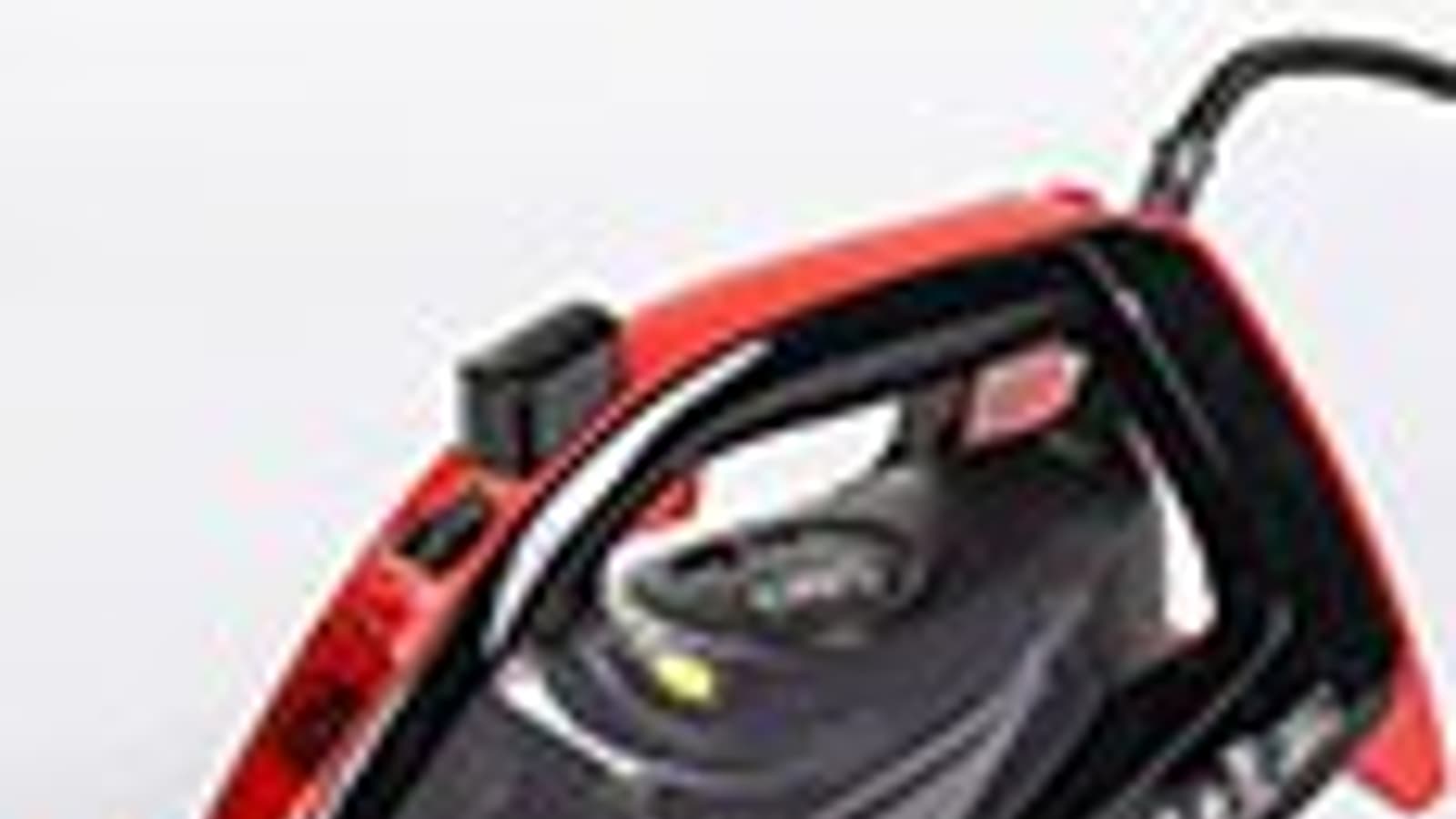 В нашей лаборатории — утюг из разряда «нормальный парень». Прибор, когда-то бывший довольно дорогим, но уже изрядно подешевевший, демонстрирует хорошие показатели по всем основным пунктам: мощность, подошва, пар. Фишка этого устройства — двусторонне зауженная подошва. Утюг, таким образом, имеет носик и с одной, и с другой стороны, что позволяет гладить, не разворачивая прибор на 180°.