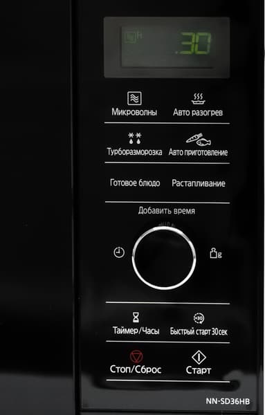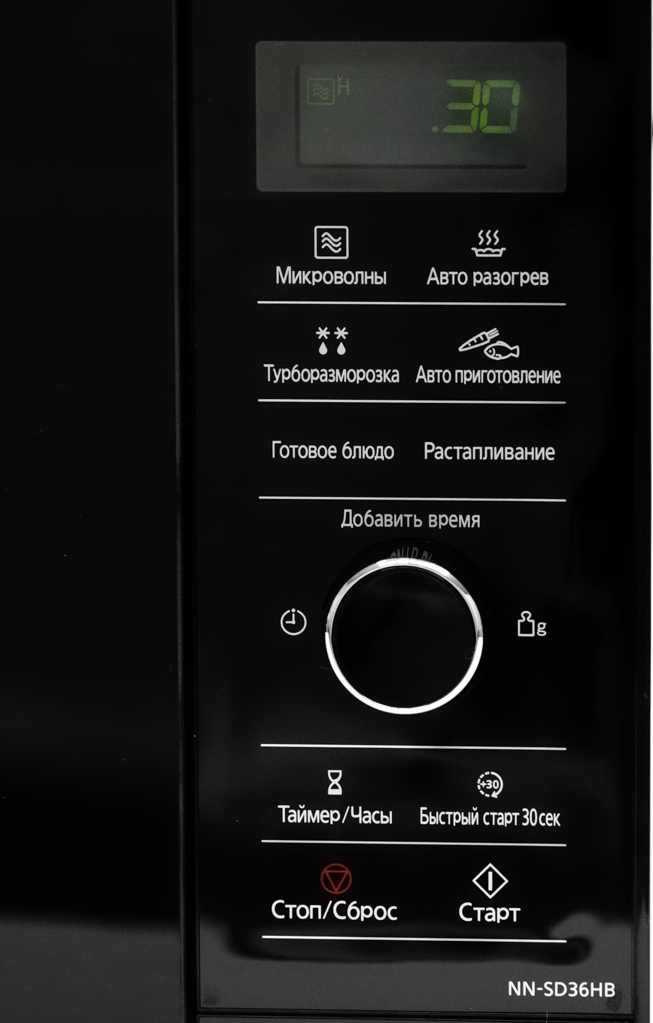 Управление Panasonic NN-SD36HB состоит из десяти сенсорных кнопок и механического поворотного переключателя.