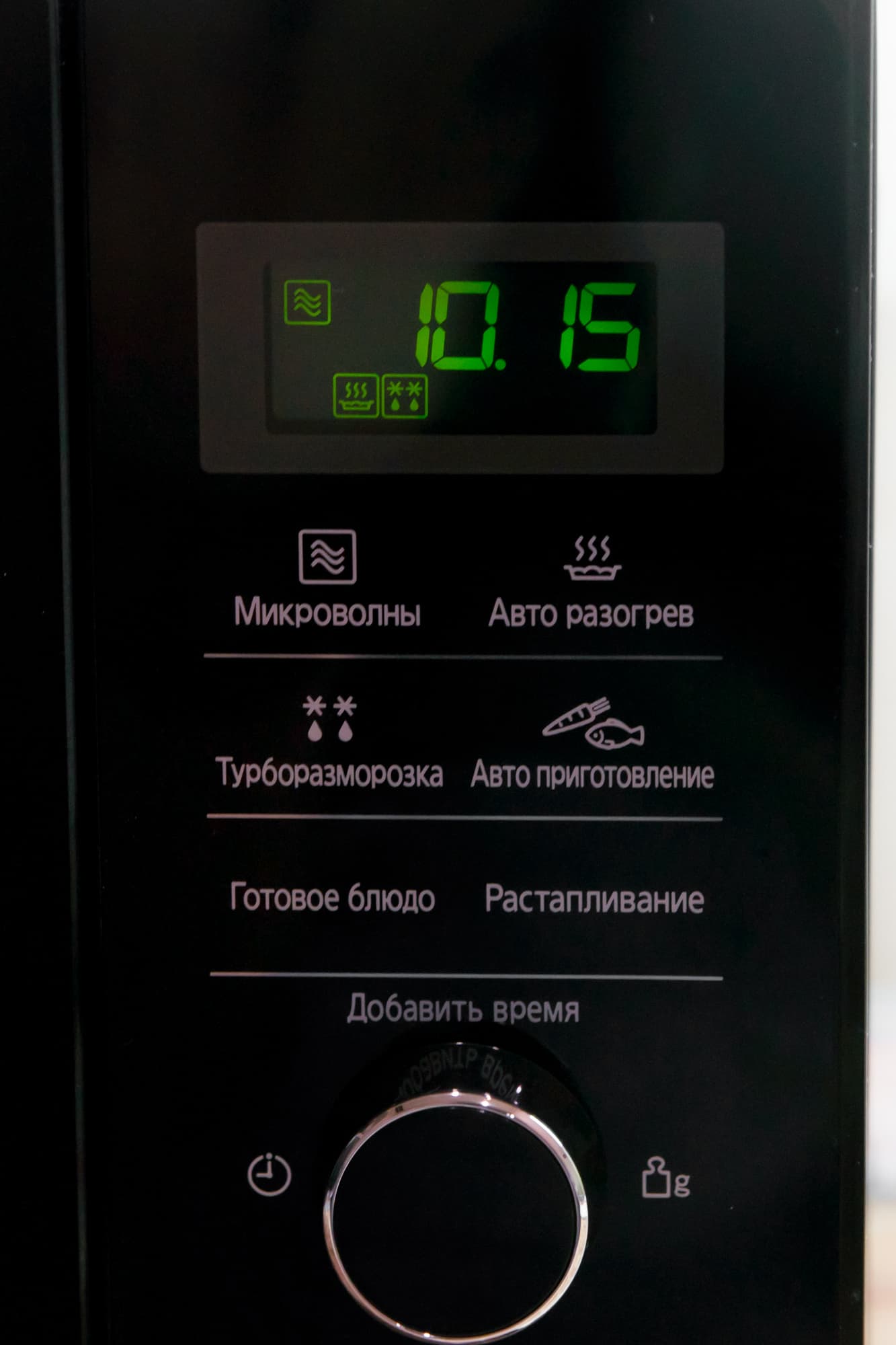 - Микроволны — регулировка мощности на 6 уровнях: 1000, 800, 600, 440, 300 и 100 Вт