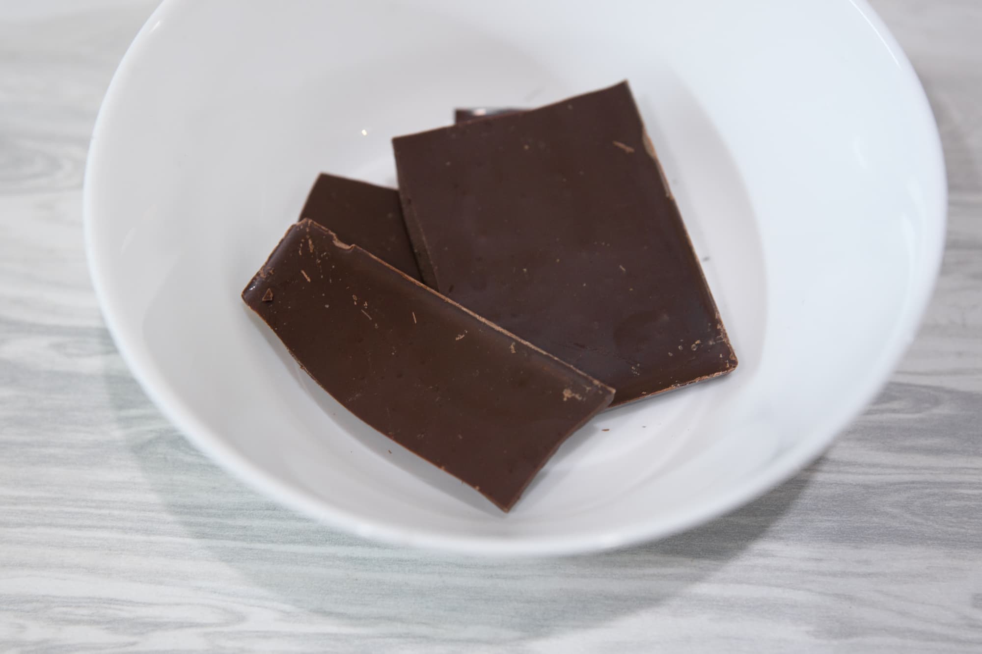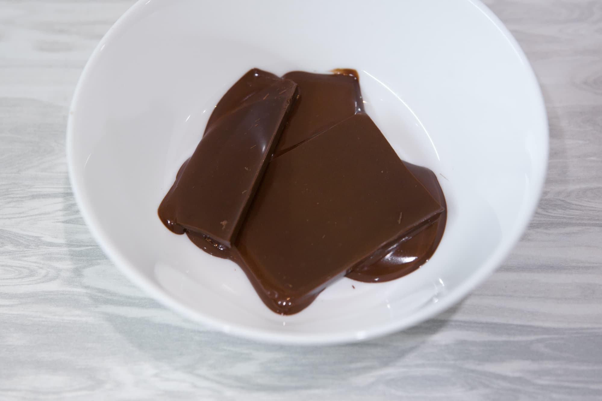 Отмерили 50 г шоколада, сложили его в пиалу и запустили микроволновку в специальном режиме (№16). На этот вес печь рассчитала 2 минуты 20 секунд. По окончании цикла мы получили вот такой результат.