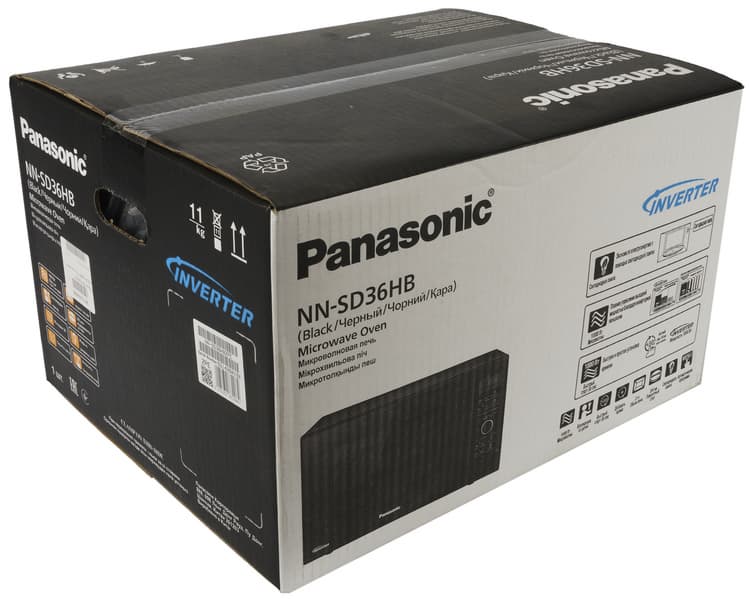 Микроволновая печь Panasonic NN-SD36HB приехала к нам в крупной прямоугольной коробке из плотного картона. На гранях фирменной упаковки размещены логотип компании, название модели, описание ее ключевых особенностей, а также приведены ряд технических характеристик и информация о производителе. Внутри прибор, упакованный в полиэтилен, надежно зафиксирован в неподвижном состоянии пенопластовыми вкладками.
