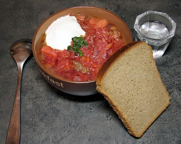 По нашим ощущениям, испортить борщ, готовя его в мультиварке, практически невозможно. В опробованном нами рецепте для приготовления борща сначала нужно обжарить лук на режиме «поджаривание», затем на нем же выпарить жидкость из мелко нарезанных кусков мяса. После этого добавить лавровый лист, нарезанный кубиком картофель, помидор, сладкий перец, нашинкованную капусту, тертую морковь и свеклу, влить лимонного сока, посолить, залить 1,5 литрами воды, 10 минут готовить в режиме «на пару́», а затем оставить на программе «суп». еще на один час.