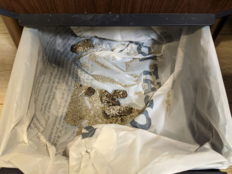Итак, с фильтрацией жидкости мы уже разобрались. А как выглядит фильтрация твердых отходов? Мы дождались посещения туалета котом и убедились, что кот действительно сделал все свои дела.