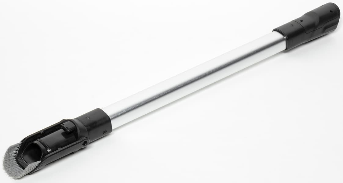 Конструкция удлинительной трубки позволяет добраться до труднодоступных мест: с ее помощью легко собрать пыль с верхних полок, карнизов, люстр и потолочных плинтусов. Откидная щетка делает уборку еще эффективнее.