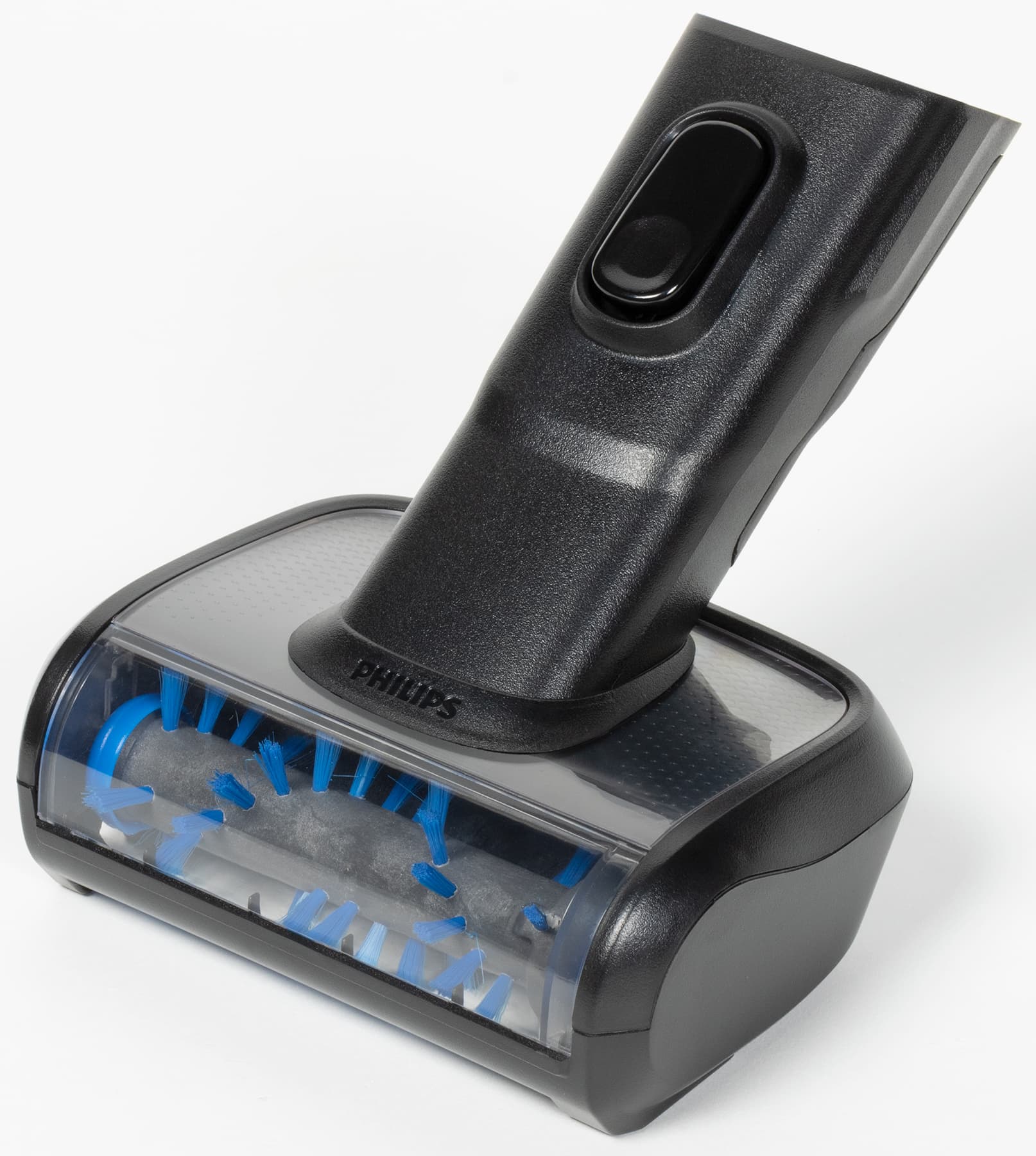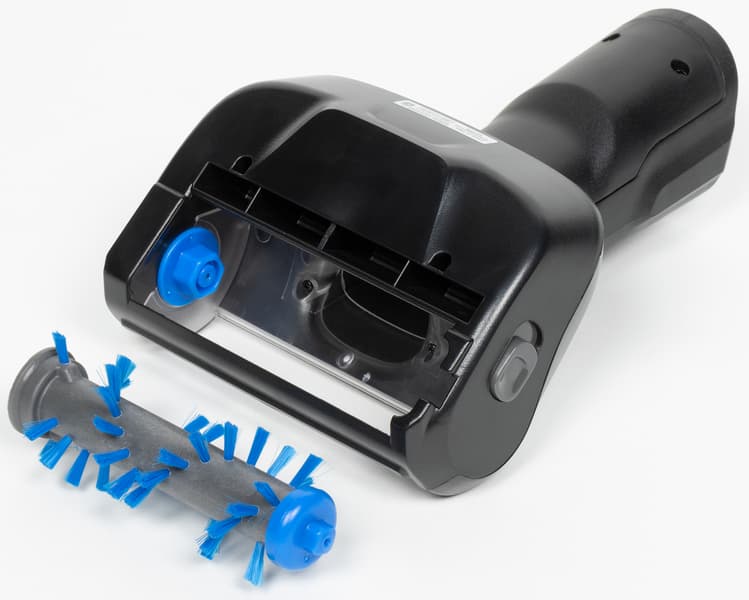 У моторной насадки для чистки мебели более простая конструкция. Так же, как и напольная, она снабжена прозрачной верхней крышкой для контроля вращения ротора, но у нее нет шарниров. Закрепляется она на сопле или удлинительной трубке неподвижно.