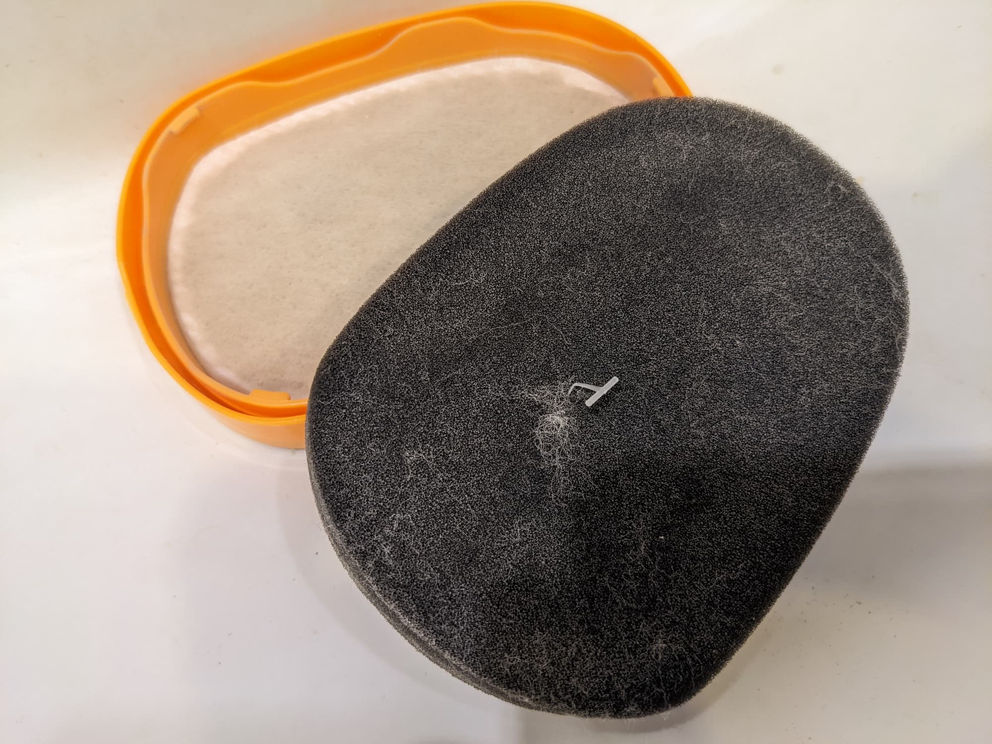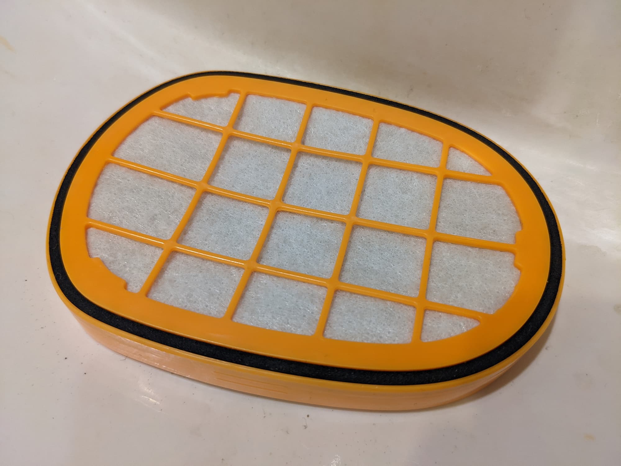 После нескольких интенсивных уборок на внешней поверхности поролонового предварительного фильтра скопилось очень незначительное количество мелкодисперсной пыли — остальное осело в контейнере.