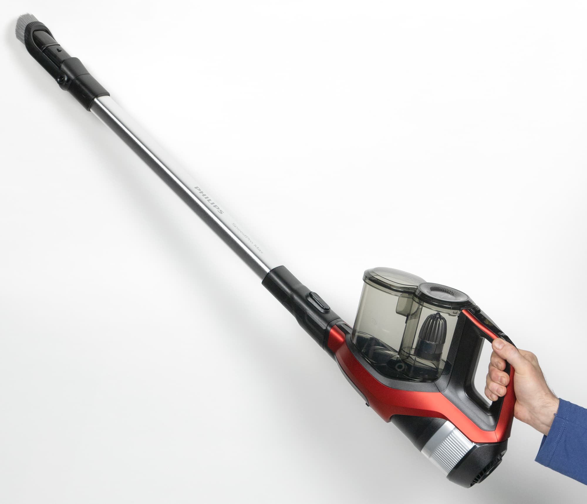 Вертикальный аккумуляторный пылесос Philips 7000 SpeedPro Max понравился нам отличным качеством фильтрации, которое обеспечивается в первую очередь удачной конструкцией циклонного фильтра.