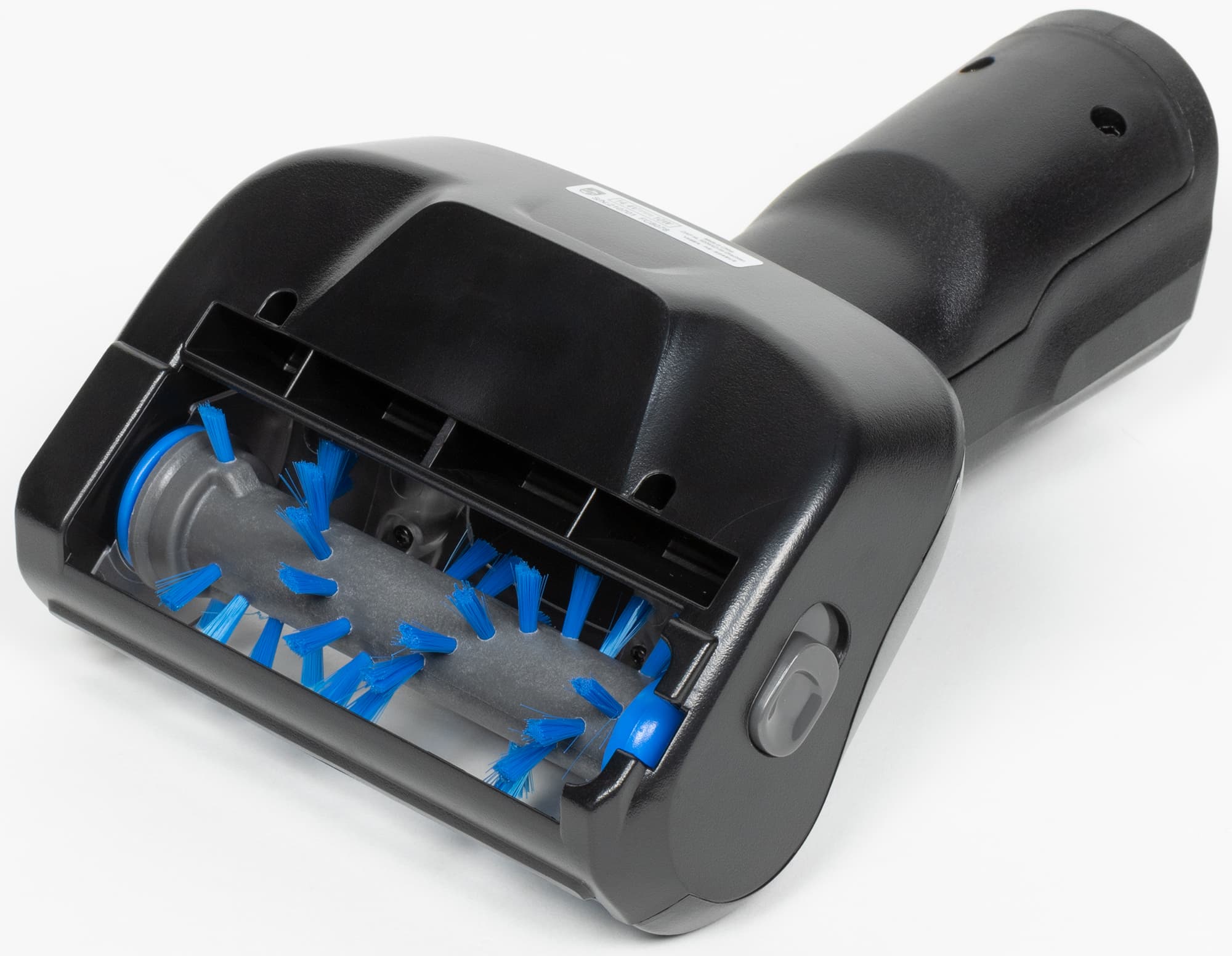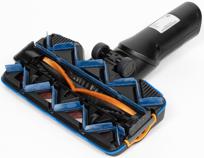 Сопло на передней части моторного блока снабжено трехконтактной розеткой для питания моторизованных насадок. Собственно, других у этой модели и нет: роль традиционной щелевой выполняет само сопло, снабженное для улучшения скольжения небольшой велюровой накладкой синего цвета.