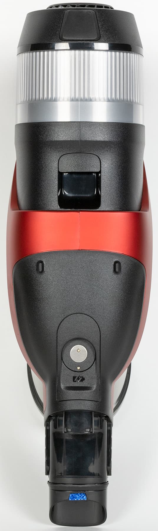 Расположение выходного отверстия показалось нам удачным: покидающий устройство воздух не поднимает пыль при уборке и, хоть и направлен непосредственно на руку пользователя, не слишком беспокоит: даже на максимальной мощности его температура невысока.