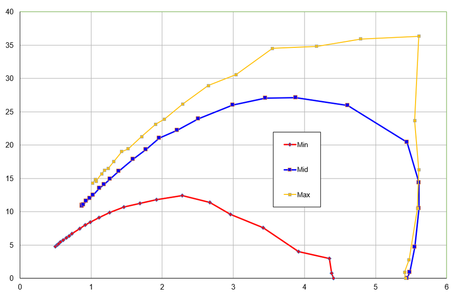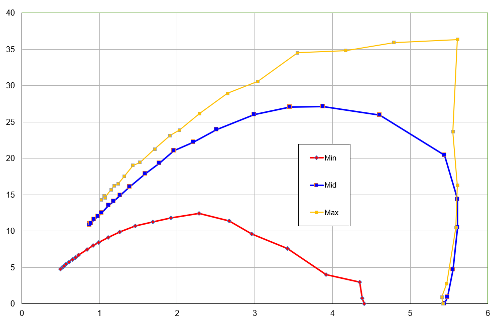 Мощность всасывания (что это такое и как мы ее измеряем, описано в отдельной статье) мы определяли при работе пылесоса без трубы и насадок, в обоих режимах. Зависимость мощности всасывания от создаваемого разрежения приведена на графике ниже: