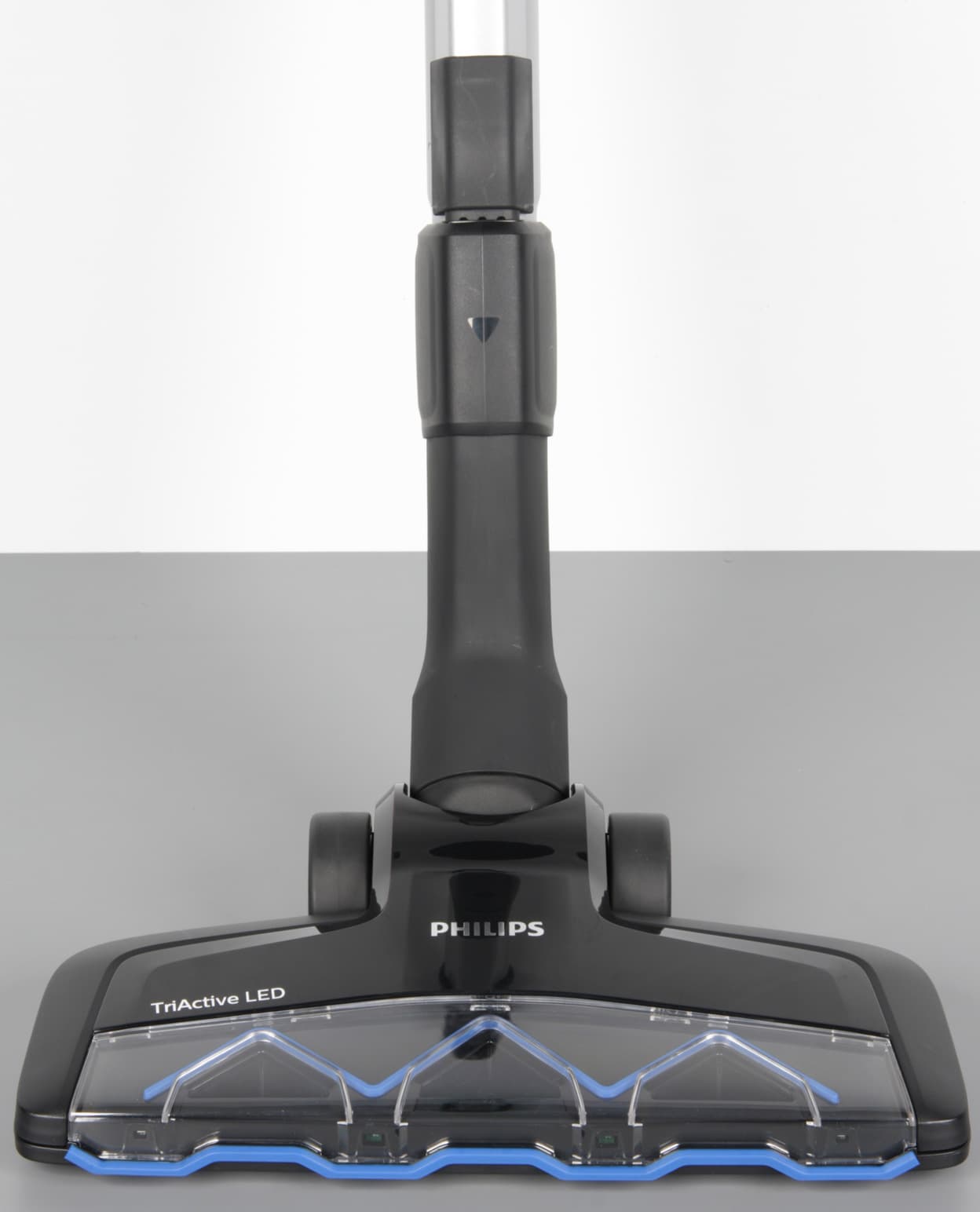 Благодаря очень высокой для своего класса (а это бытовой напольный пылесос) мощности всасывания пылесос Philips Performer Ultimate позволит быстро и тщательно убирать большие площади пола как с твердыми участками, так и с ковровыми покрытиями. При этом даже не придется менять насадку или переключать режим ее работы, поскольку пылесос комплектуется универсальной насадкой TriActive LED. К достоинствам этой насадки также относятся яркая светодиодная подсветка с широким охватом, помогающая контролировать уборку в темных закоулках, и отсутствие щетины, в которой обычно запутываются волосы и нитки. Далее списками: