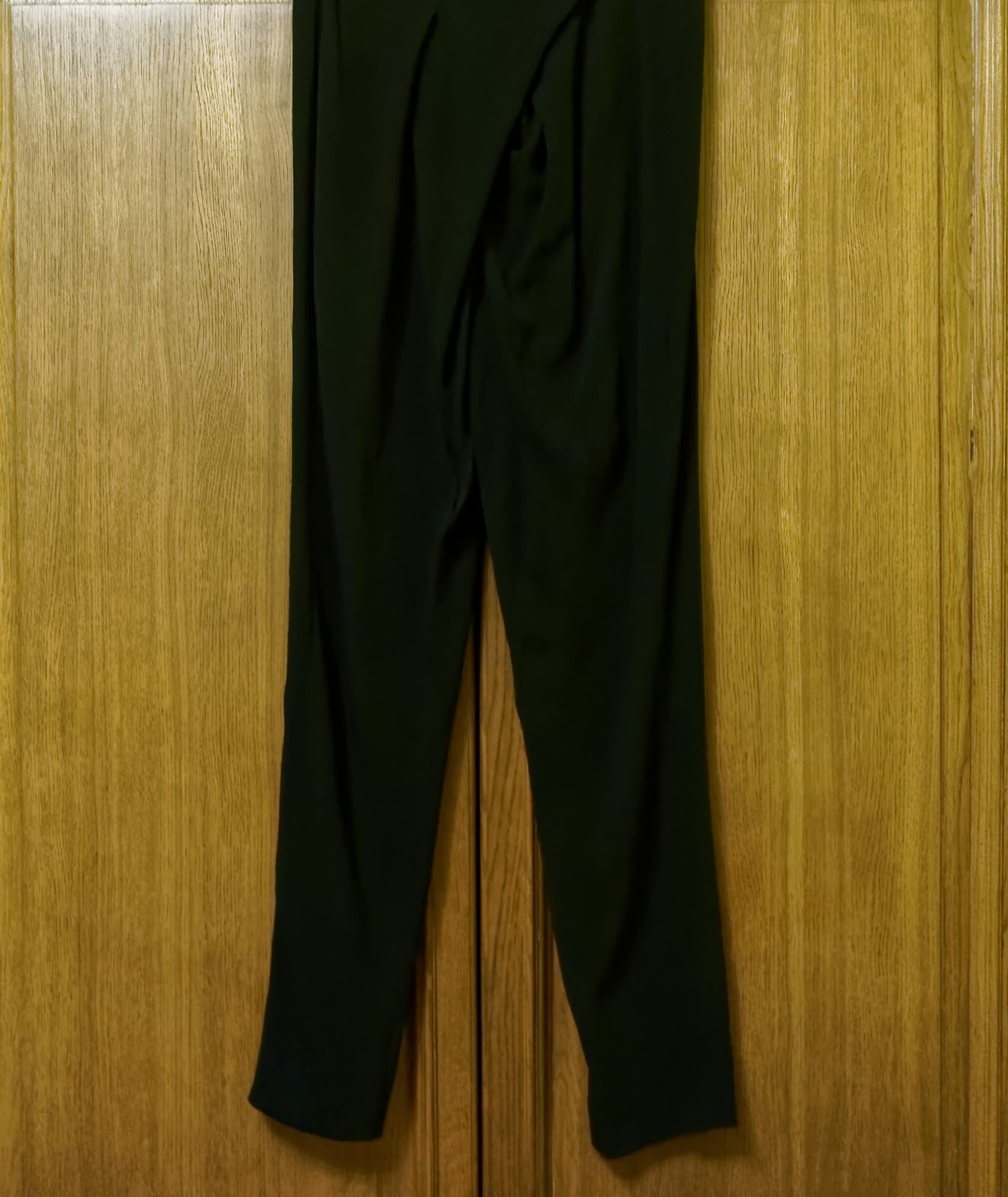 Эту вещь тоже лучше всего гладить вертикальным отпариванием. Материал изделия благодарно вбирает в себя пар и начинает расправляться под собственной тяжестью. Самое сложное — расправить складки и вытачки спереди на поясе.