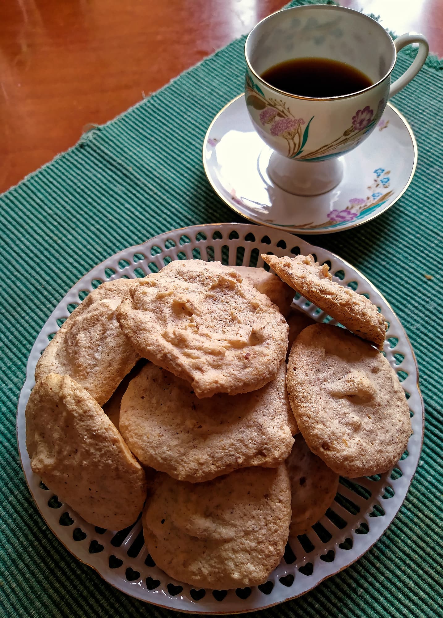 Печенье напоминает миндальное пирожное из детства: снаружи золотистое и хрустящее, внутри воздушно-тягучее, с ярким вкусом орехов.