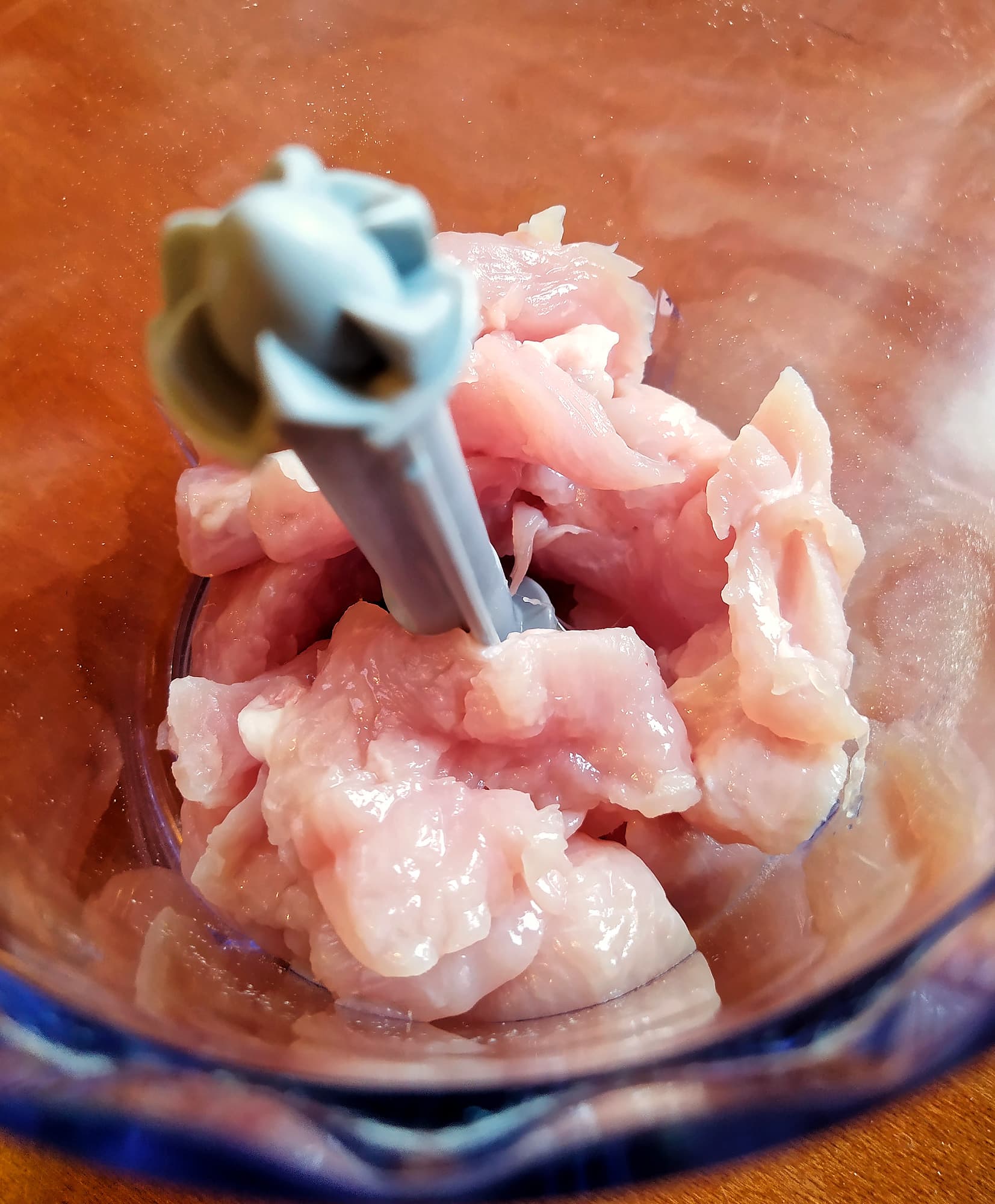 Переходим к измельчителю. Отличный вариант проверить этот элемент блендерного набора — приготовить фарш. Мы взяли полкило индейки, порезали на небольшие кусочки и измельчили в два захода. Чаша измельчителя хоть и заявлена как XL, и действительно довольно вместительная, но все же инструкция позволяет измельчать за раз только 200 граммов мяса.