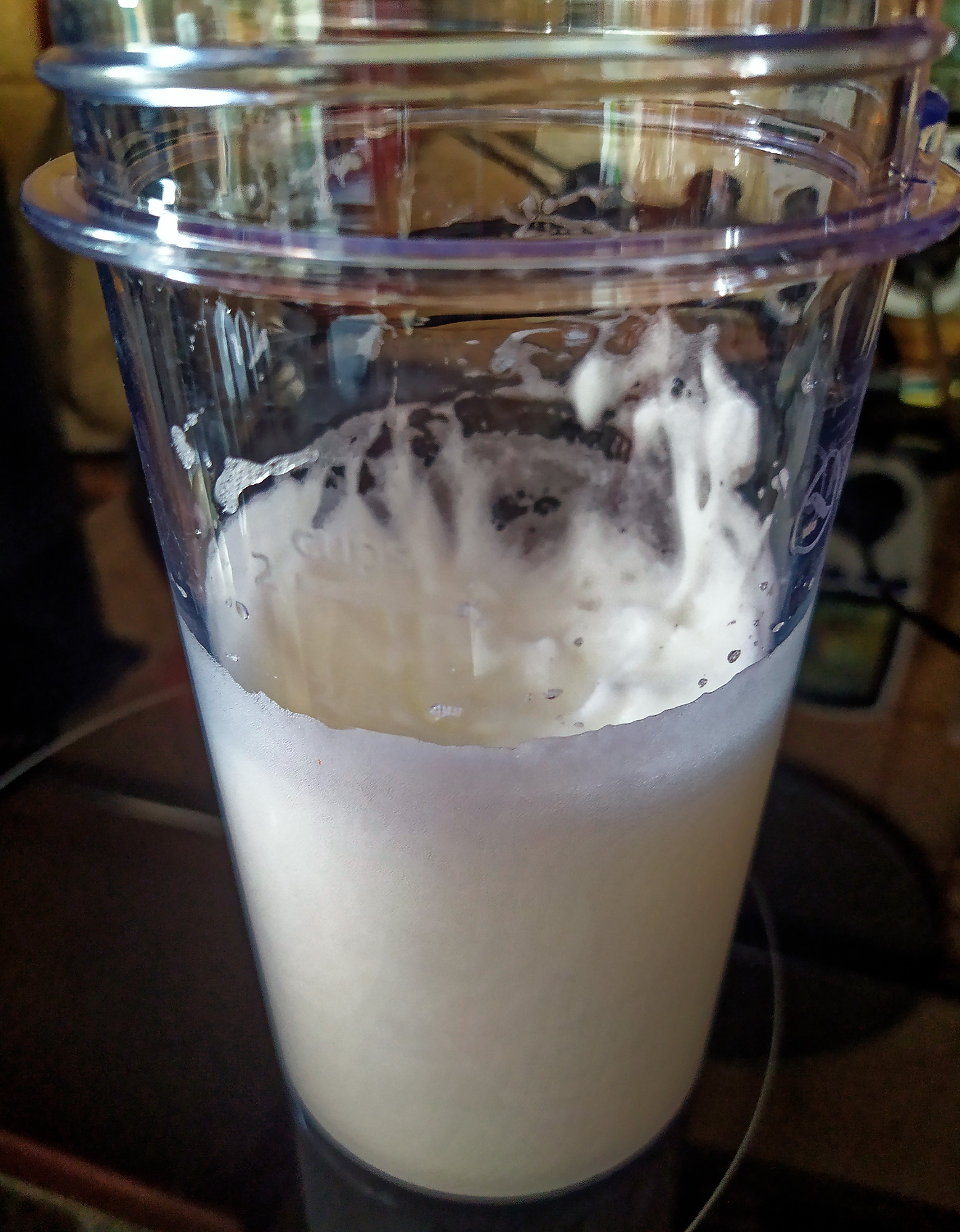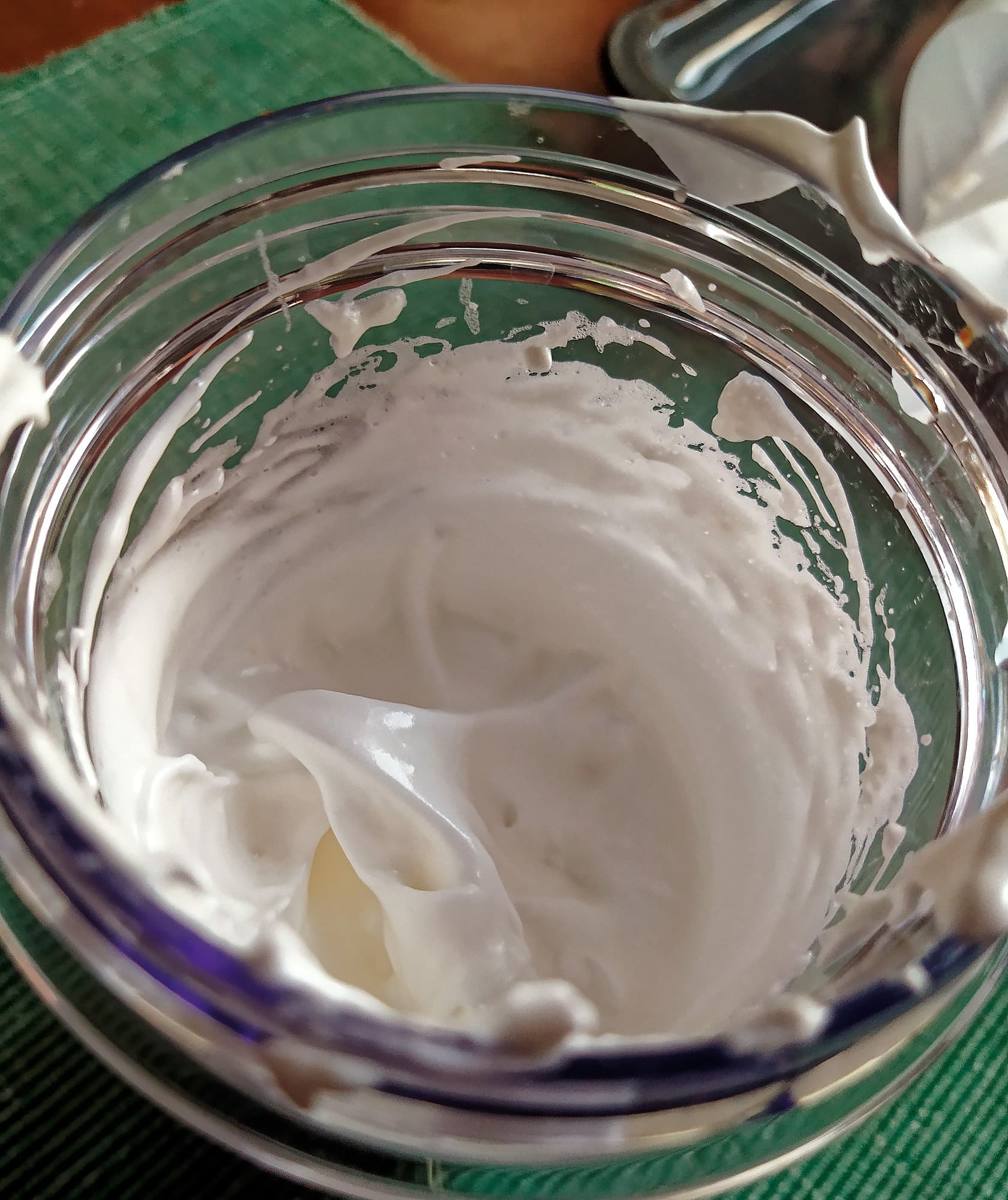 Пусть вас не смущает белок на краях стакана — это мы неудачно вынули венчик, во время взбивания ничего не разбрызгивается.