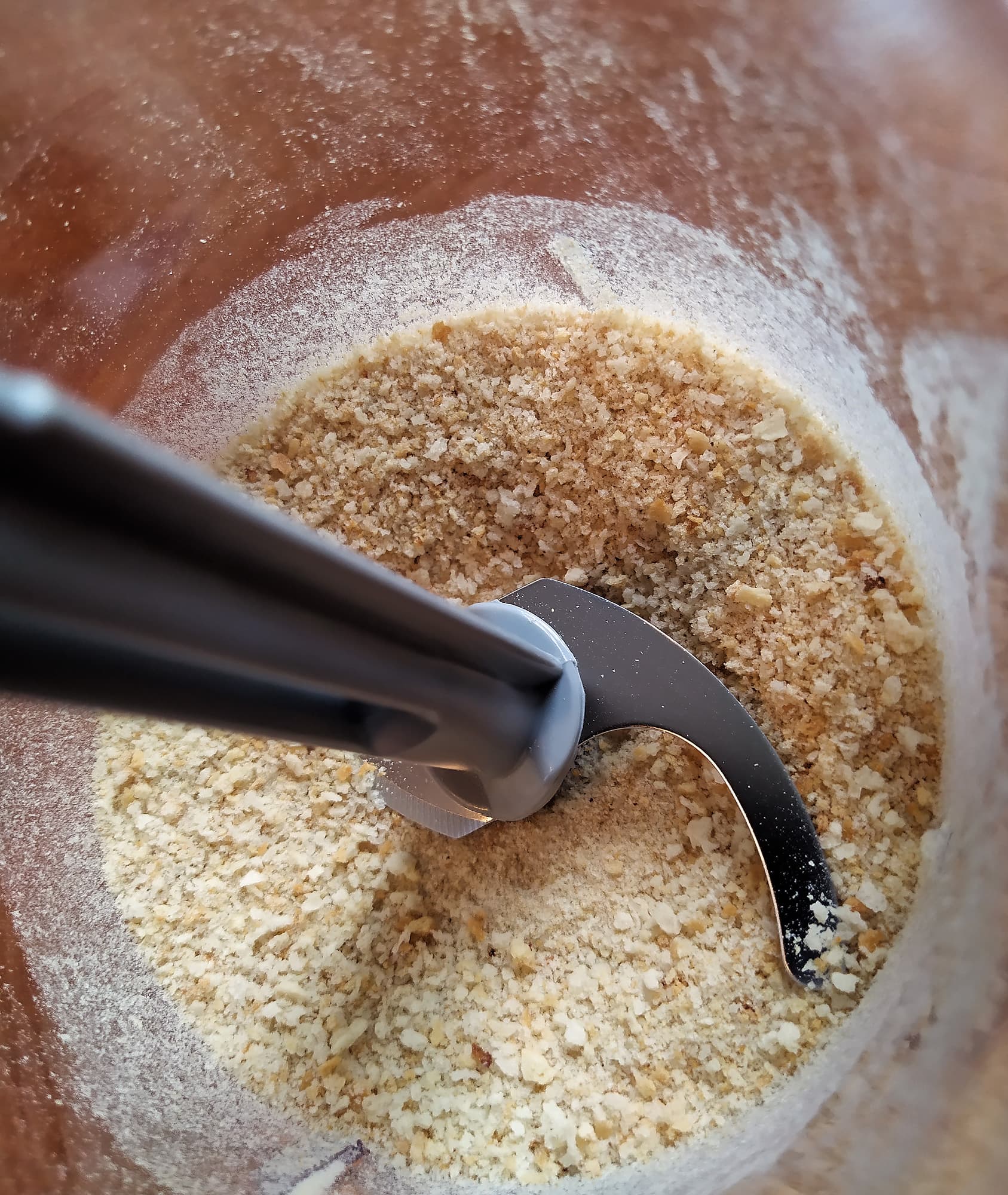 Получили несколько разнородную хлебную крошку, но достаточно мелкую, чтобы использовать ее в качестве, например, панировки.