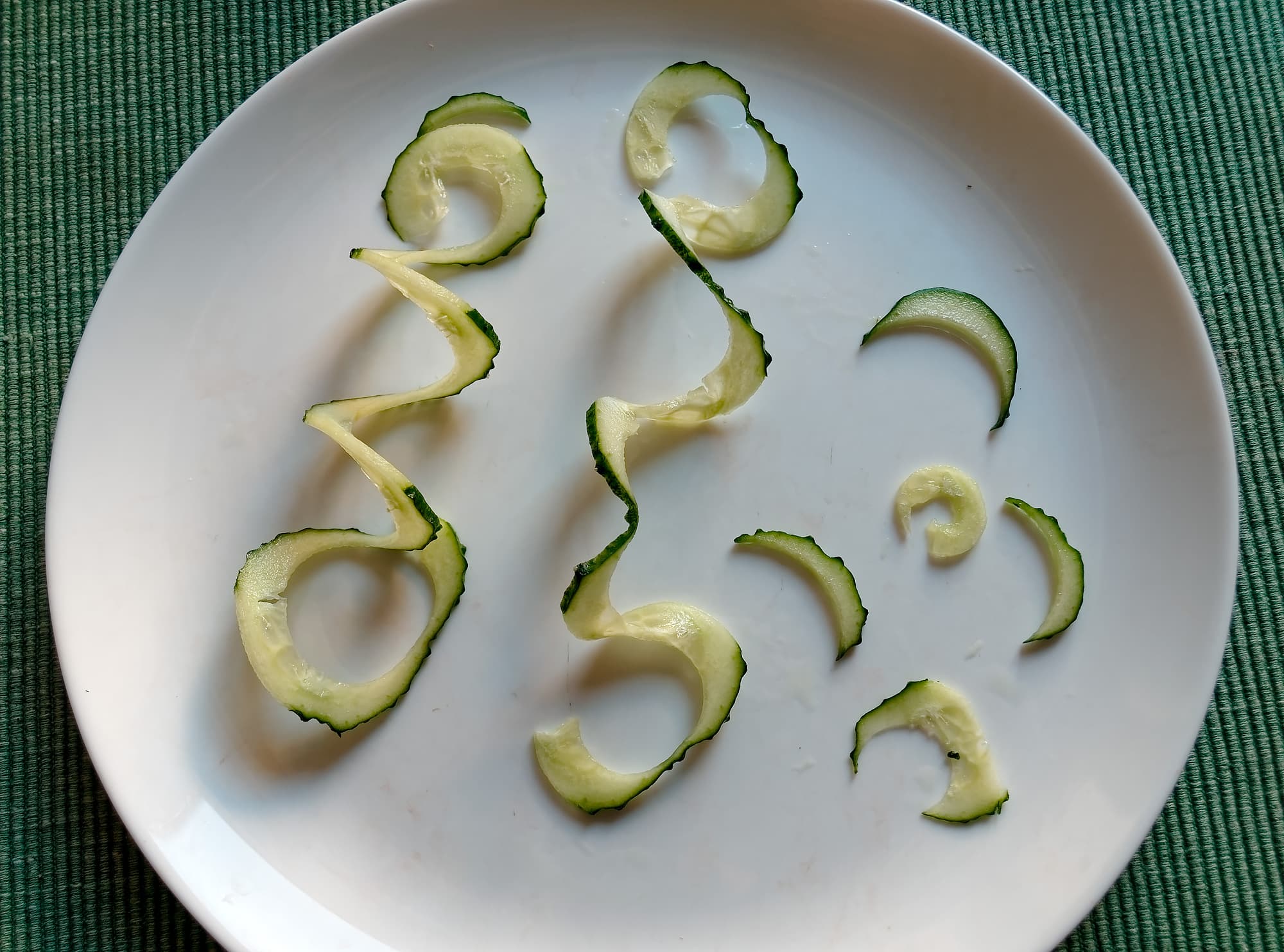 Насадку для «лингвини» проверили на огурце. Резать его поперек не стали.