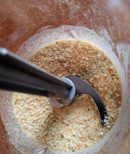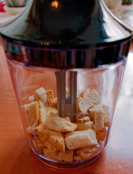 Для фрикаделек также потребуются панировочные сухари. Стакан сушеного хлеба отправили в чашу и пробивали 20 секунд.