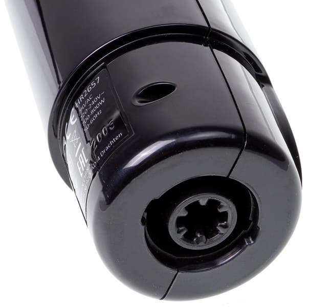 Работать с HR2657/90 было приятно. Во первых, мы оценили по достоинству систему управления. Часто для переключения скорости необходимо прервать работу, так как надо повернуть регулирующее колесико. Здесь же большим или указательным пальцем руки, держащей моторный блок, вы просто сильнее или слабее жмете на кнопку, что позволяет регулировать интенсивность работы насадок, не отрываясь от процесса.